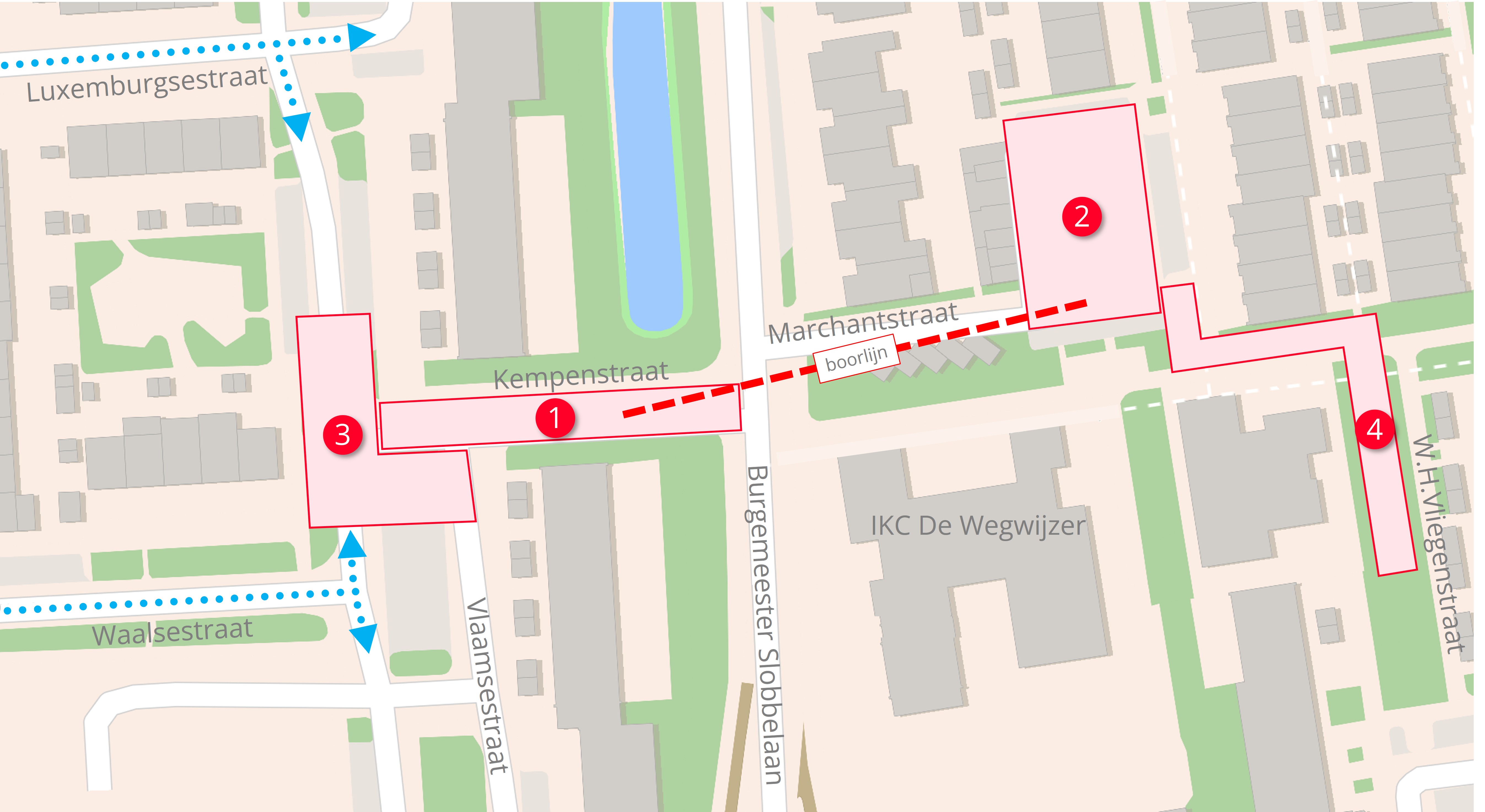 - Voetpaden, woningen en IKC De Wegwijzer blijven bereikbaar.
